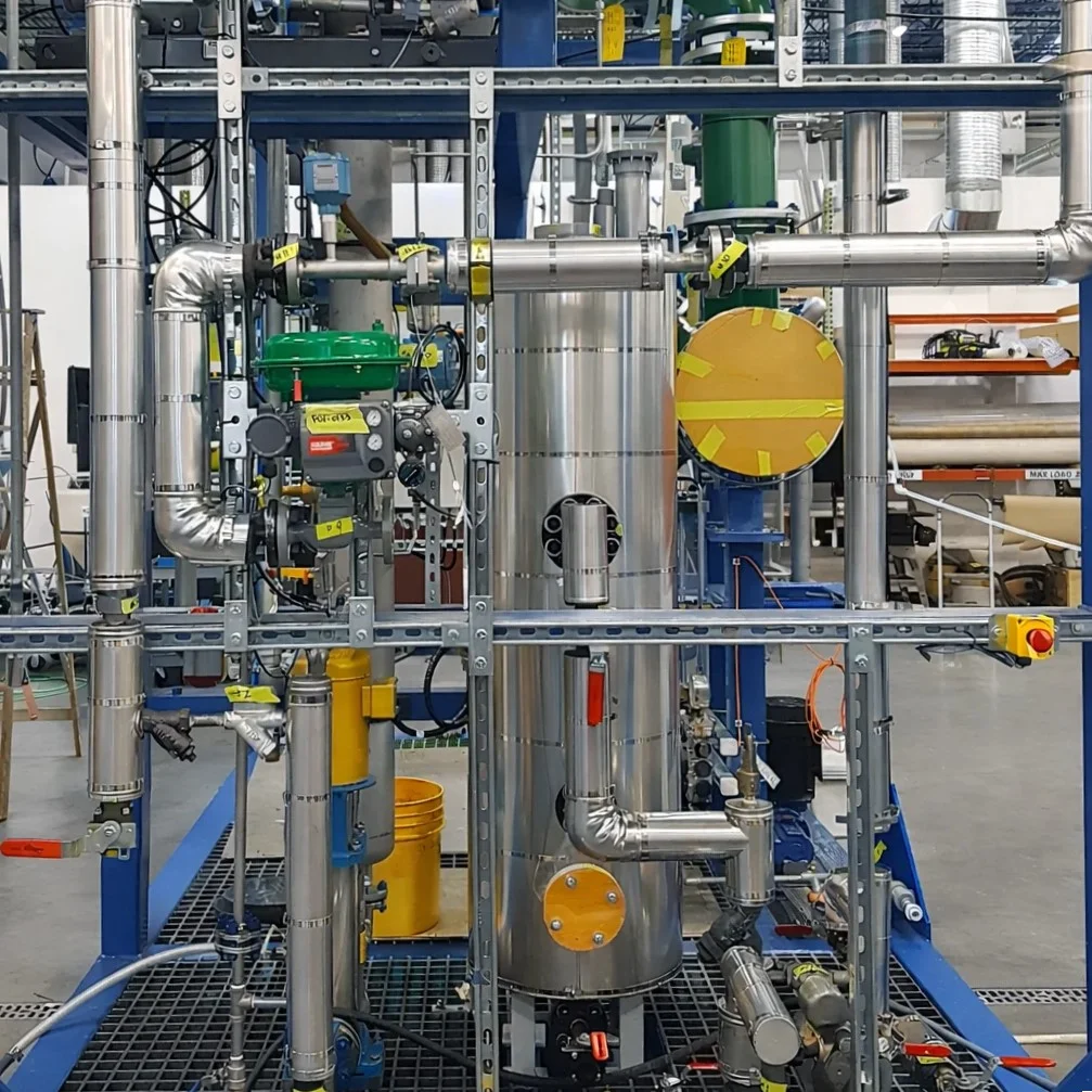 The 40,000 sq ft (3,700 m²) pilot plant at BC Research Inc. is designed for the safe operation of advanced chemical processes under industrially relevant conditions. With 30 ft (9 m) high ceilings, steam and air, cooling water, and large AC and DC power capacities, the facility supports the study of demanding reactions, including high-temperature, high-pressure, and toxic or volatile chemistries.
